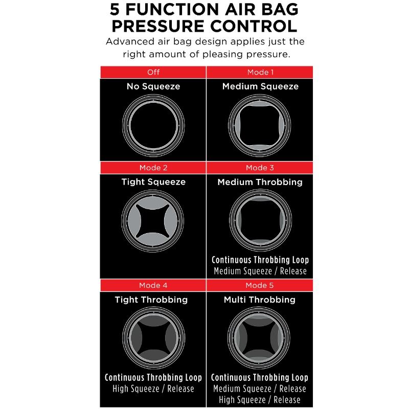 - 5-Funktions-Airbag-Druckregelung – Das fortschrittliche Airbag-Design übt genau den richtigen, angenehmen Druck aus. Zum Aktivieren drücken und zum Freigeben 3 Sekunden lang gedrückt halten.